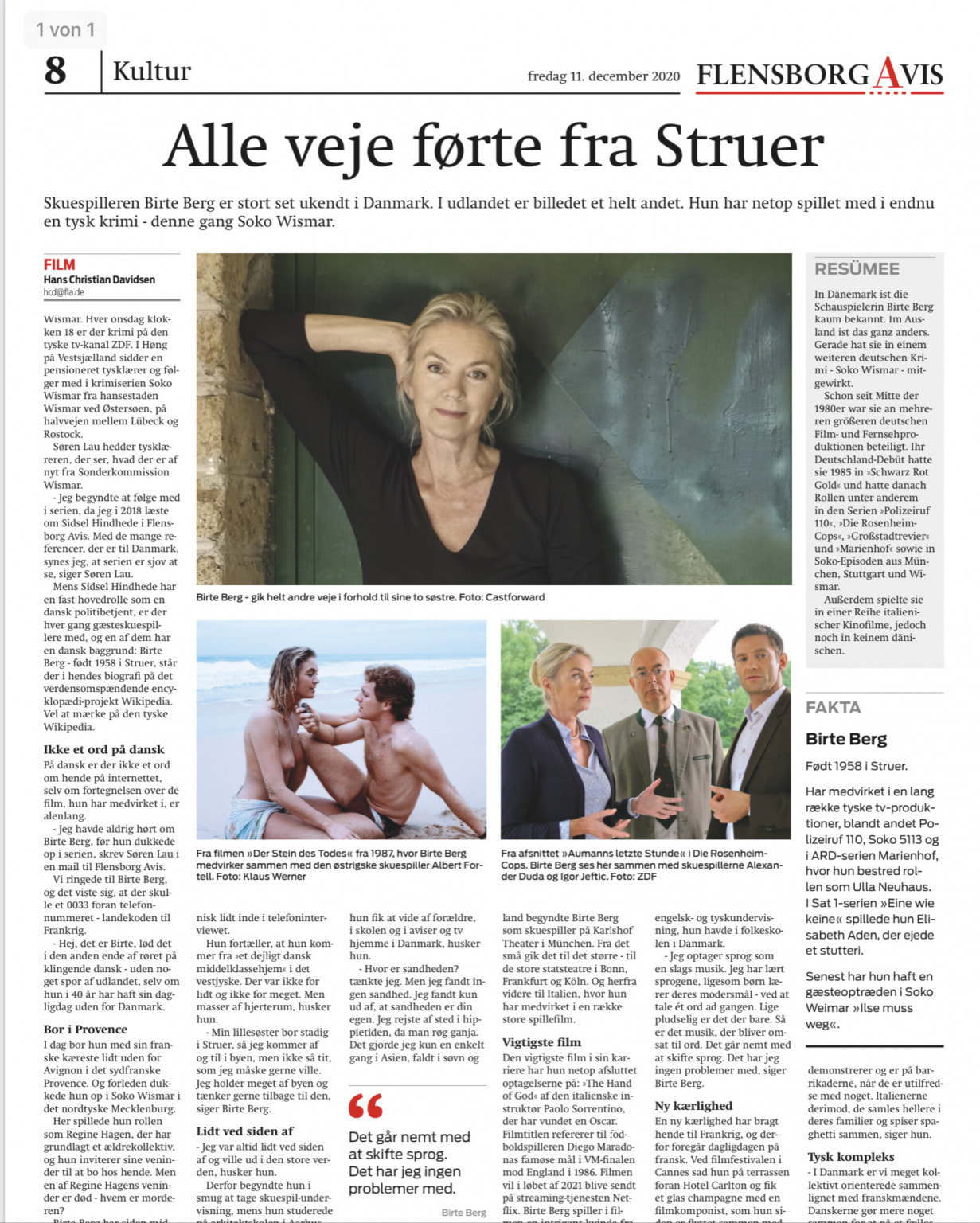 | 13. Dez. 2020Birte Berg hat in Neapel die Rolle der Graziella für die Produktion "The Hand of God" abgedreht. Regie: Paolo Sorrentino
